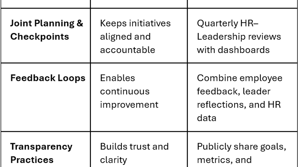 Partnership becomes strategic, with HR enabling and leaders executing, instead of one side doing all the work.